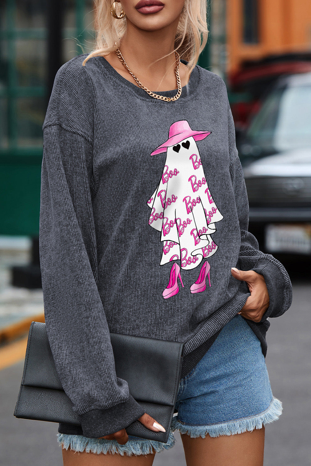 BOO Ghost Graphic Drop Shoulder Sweatshirt