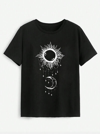 Sun & Moon Graphic Round Neck T-Shirt